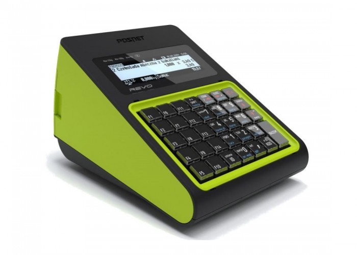 Opis urządzenia: Posnet Revo to rewolucyjna kasa fiskalna łącząca ergonomiczne rozwiązania i wyjątkową odporność z nowoczesnym designem.